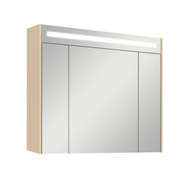 Фасады зеркального шкафа изготовлены из триплекса, который абсолютно безопасен. Петли наклеены производителем по специальной технологии, что обеспечивает их максимально надежное соединение с зеркалами. Внутри зеркального шкафа установлена розетка прямого включения. За створками шкафа – стеклянные полочки